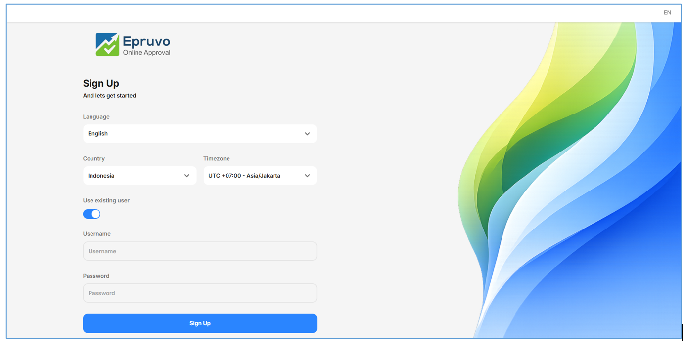 - Masih di halaman sign up, aktifkan switch “Existing User”, dapat dilihat pada gambar berikut