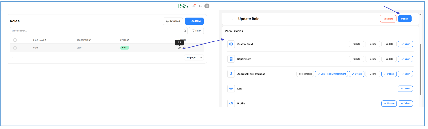 - Jika sudah, klick tombol “Update” maka kolom atau akses yang diedit akan tersimpan