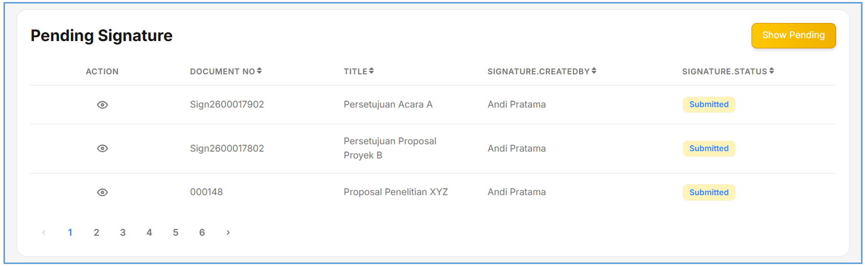 - Sorot Dashboard pada bagian “Pending Signature”, seperti pada gambar dibawah