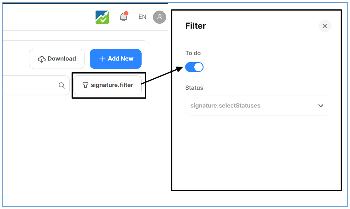 - Filter To-do hanya menampilkan dokumen yang pending pada akun tersebut yaitu Progress dan Reject saja