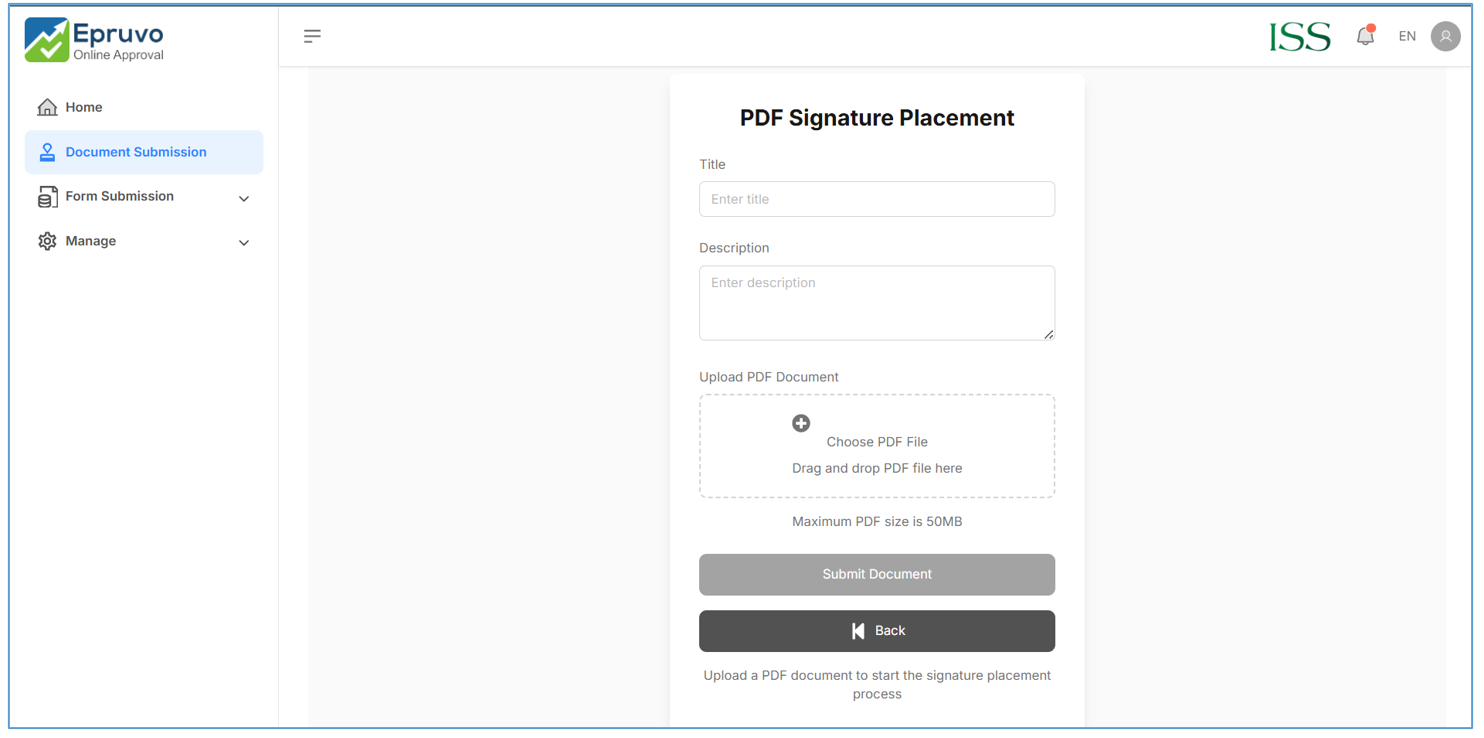 - Setelah upload PDF, klick tombol “Submit Document”