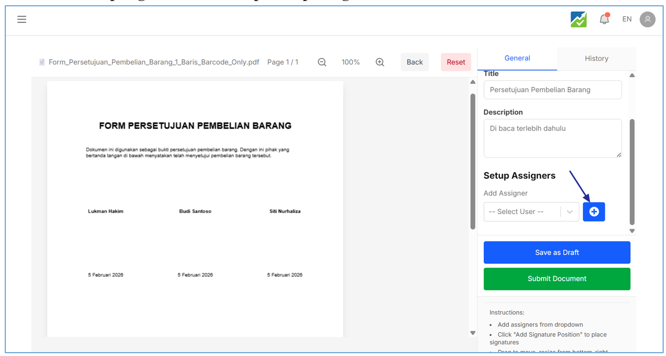 - Login dengan akun Approver atau pembuat dokumen