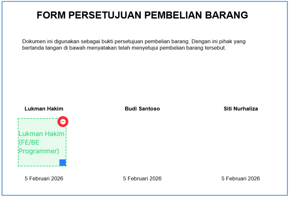 - Setelah diklick, posisikan Kotak Sign user tersebut di lokasi yang diinginkan misal seperti ini :