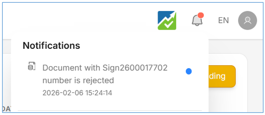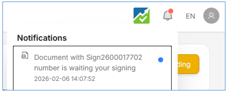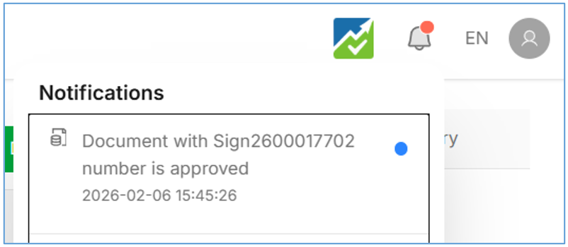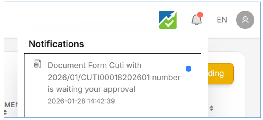 - Sebagai signer silahkan cek notifikasi yang masuk di lonceng, seperti pada gambar dibawah