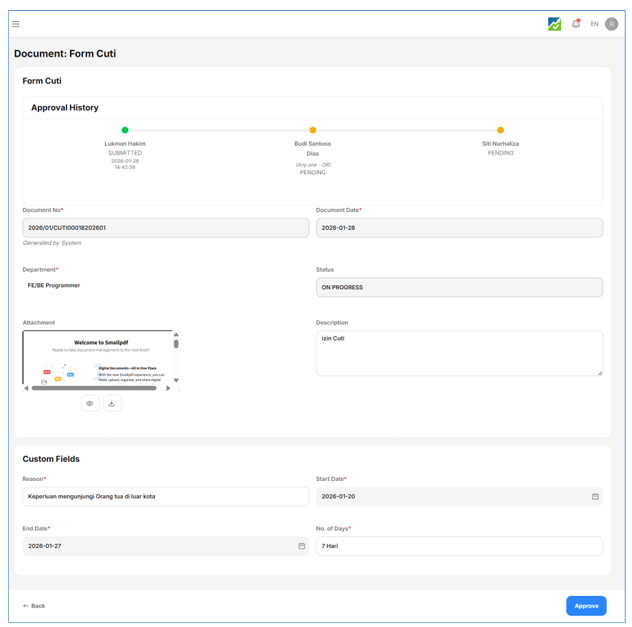 - Login dengan akun Approver atau pembuat dokumen