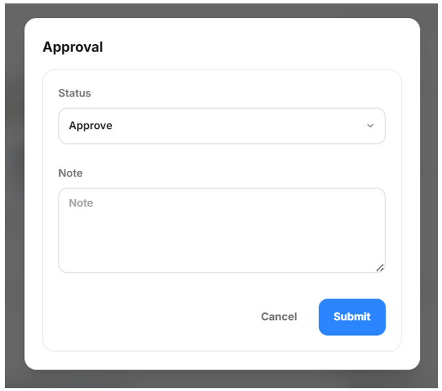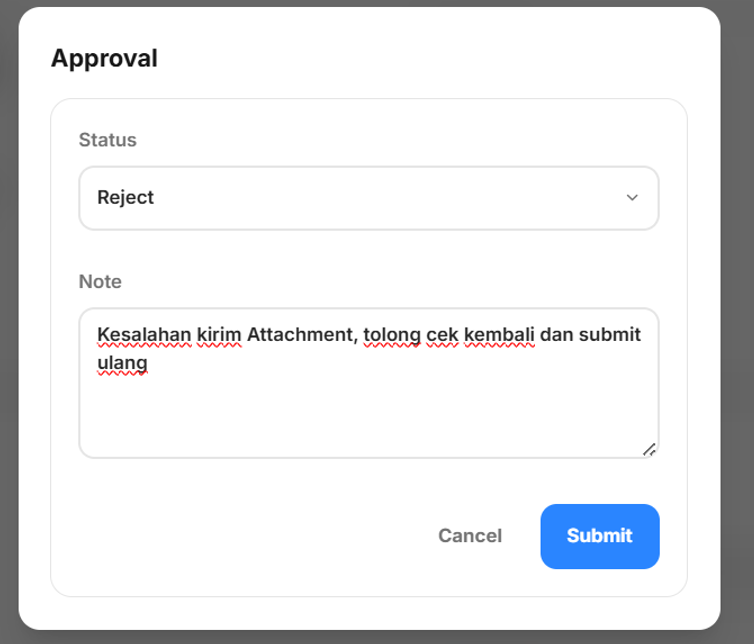 - Notes Opsional untuk approve