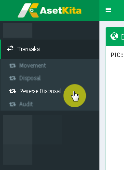 Transaksi Aset yang dapat dilakukan yaitu Perpindahan/Mutasi, Penghapusan/Disposal dan Pembatalan Penghapusan/Reverse Disposal.