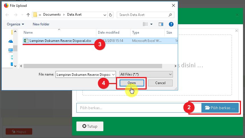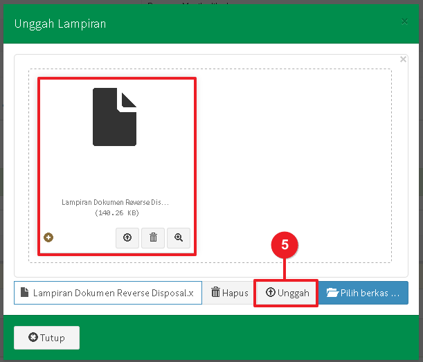 Berikut langkah-langkah mengunggah file lampiran reverse disposal: