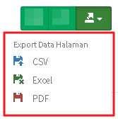 - Tombol Export Data Aset. Klik tombol export data aset untuk mengunduh data aset yang ditampilkan pada halaman daftar aset saat ini. Anda dapat mengunduh data aset dalam bentuk format CSV, Excel dan PDF.