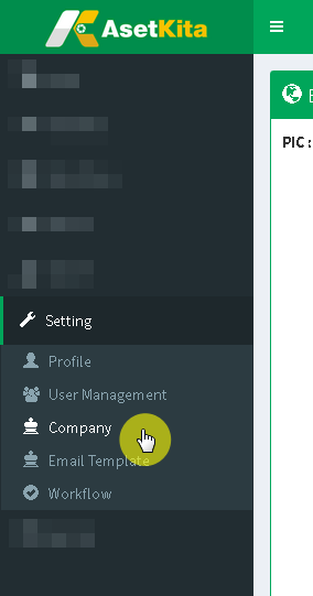 Pilih menu Company dalam grup menu Setting untuk mengakses halaman profil perusahaan.