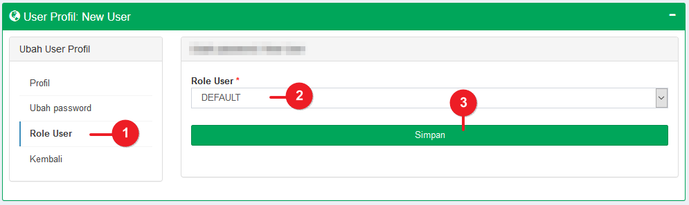 - Pada form Ubah Role User, pilih Hak Akses yang dikehendaki di kolom Role User.