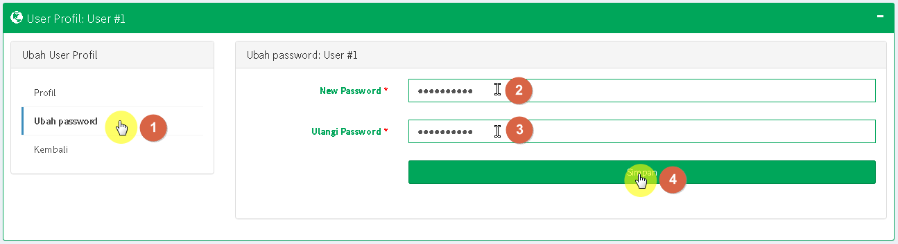 - Konfirmasi kembali Password baru tersebut pada kolom Ulangi Password.