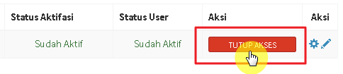 Untuk menutup akses, klik TUTUP AKSES pada kolom Aksi.