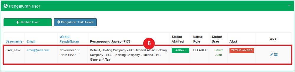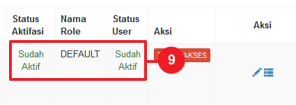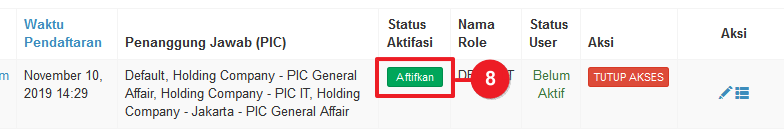 User yang ditutup aksesnya, tidak dapat Sign-In ke dalam Aplikasi. Sebaliknya, klik AKTIFKAN AKSES untuk membuka kembali akses.