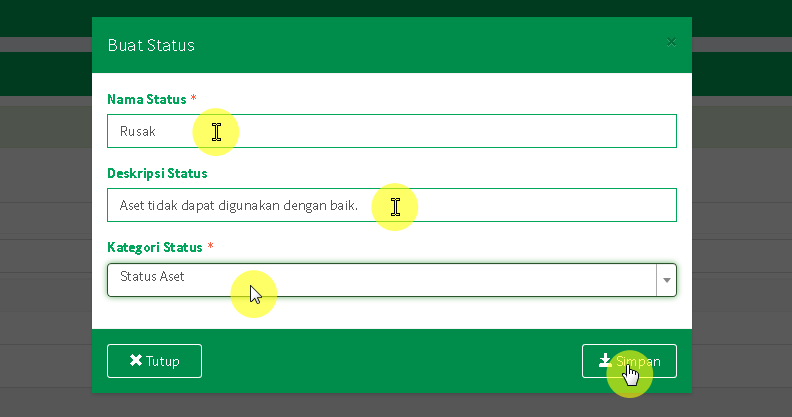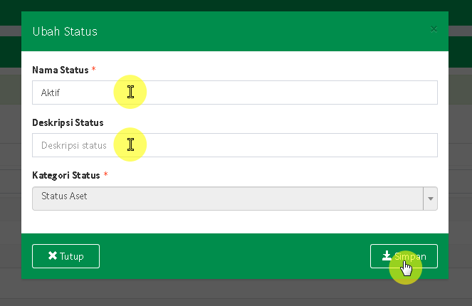 Form Tambah Status Aset